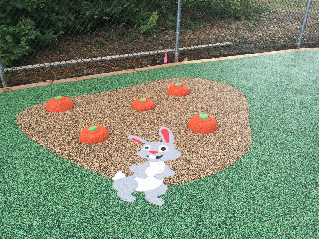 The Tire Stewardship BC fully funded this vibrant and beautiful new playground in Surrey. This playground is in memory of Don Blythe, TSBC Chairman of the Board. Playful design elements include animated rabbit, bee and 3 dimensional fish, tomatoes and boulders.
